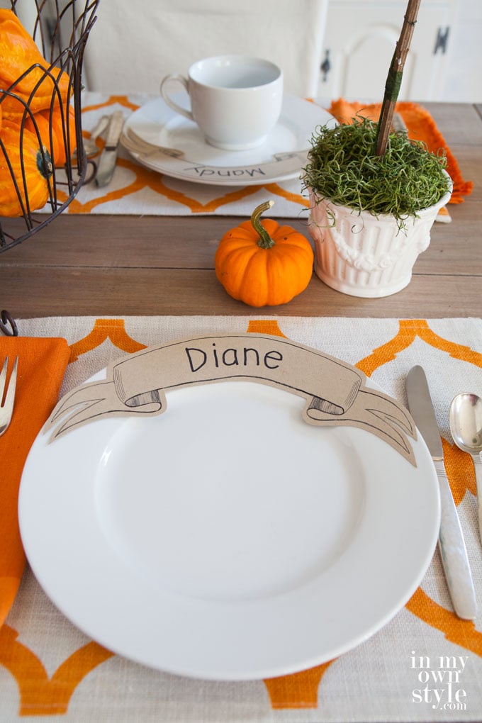 If you would like something a bit different, these Brown Bag Place Cards will fill the bill. Head to your paper bag stash to make them. Add a leaf to add more fall color to the table.